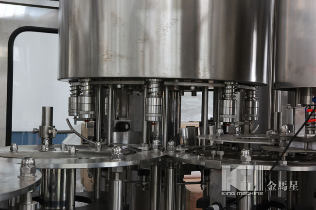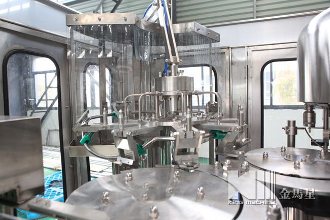 飲用水灌裝機(jī)集沖洗、灌裝、旋蓋于一體,全過程自動(dòng)化運(yùn)行,主要適用礦泉水、純凈水等不含氣飲料的沖瓶、灌裝、封口連續(xù)作業(yè)。本機(jī)大部分電器系統(tǒng)零件均采用國外優(yōu)良產(chǎn)品,所有與液料接觸的地方均采用優(yōu)質(zhì)的不銹鋼材料制作,主關(guān)鍵部件采用數(shù)控機(jī)床精密加工, 整機(jī)光電檢測(cè)各部件的運(yùn)行狀況,無瓶不灌裝,無瓶不送蓋,自動(dòng)化程度高,操作簡易,具有耐磨、穩(wěn)定、故障率低等特點(diǎn),產(chǎn)品質(zhì)量處于行業(yè)前列,是新老飲料投資者的選擇。