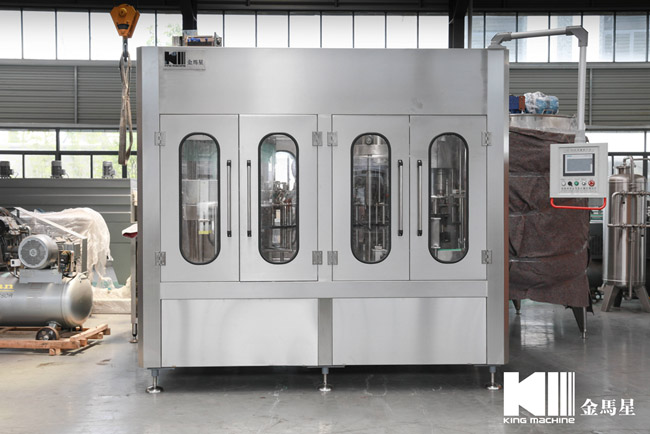 飲用水灌裝機集沖洗、灌裝、旋蓋于一體,全過程自動化運行,主要適用礦泉水、純凈水等不含氣飲料的沖瓶、灌裝、封口連續(xù)作業(yè)。本機大部分電器系統(tǒng)零件均采用國外優(yōu)良產(chǎn)品,所有與液料接觸的地方均采用優(yōu)質(zhì)的不銹鋼材料制作,主關(guān)鍵部件采用數(shù)控機床精密加工, 整機光電檢測各部件的運行狀況,無瓶不灌裝,無瓶不送蓋,自動化程度高,操作簡易,具有耐磨、穩(wěn)定、故障率低等特點,產(chǎn)品質(zhì)量處于行業(yè)前列,是新老飲料投資者的選擇。