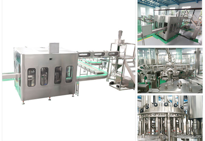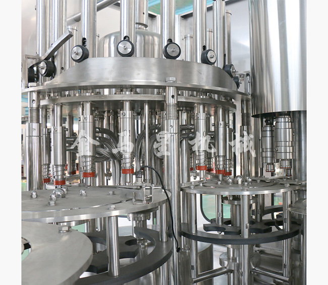 飲用水灌裝機(jī)集沖洗、灌裝、旋蓋于一體,全過程自動(dòng)化運(yùn)行,主要適用礦泉水、純凈水等不含氣飲料的沖瓶、灌裝、封口連續(xù)作業(yè)。本機(jī)大部分電器系統(tǒng)零件均采用國外優(yōu)良產(chǎn)品,所有與液料接觸的地方均采用優(yōu)質(zhì)的不銹鋼材料制作,主關(guān)鍵部件采用數(shù)控機(jī)床精密加工, 整機(jī)光電檢測(cè)各部件的運(yùn)行狀況,無瓶不灌裝,無瓶不送蓋,自動(dòng)化程度高,操作簡(jiǎn)易,具有耐磨、穩(wěn)定、故障率低等特點(diǎn),產(chǎn)品質(zhì)量處于行業(yè)前列,是新老飲料投資者的較佳選擇。