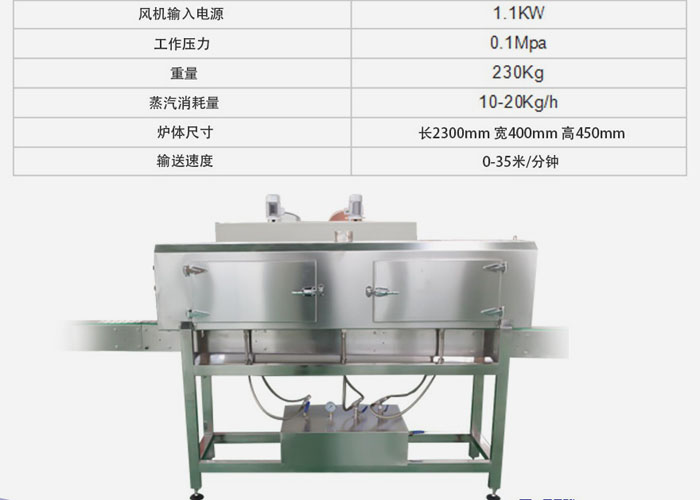 新型的熱蒸汽收縮機(jī)能夠應(yīng)對(duì)不同瓶型進(jìn)行平順收縮。低壓蒸汽鼓的分布和蒸汽噴射的路線都通過無縫管,是一致的。噴嘴被分成三段,并且每一段的高度位置和蒸汽輸出可以進(jìn)行調(diào)節(jié),以達(dá)到良好的收縮效果。整臺(tái)機(jī)器由不銹鋼制成,所包含的保溫層不僅節(jié)約了能量,也遵守了國際安全標(biāo)準(zhǔn)。不銹鋼接水盤負(fù)責(zé)收集冷凝水。整機(jī)采用防水設(shè)計(jì),操作便捷簡單,保養(yǎng)費(fèi)用較低。在原有結(jié)構(gòu)上,增加雙層保溫爐,更加節(jié)能。