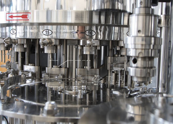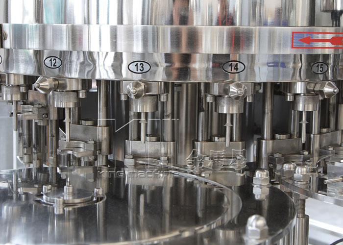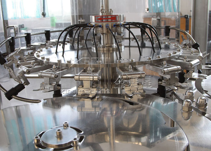 飲用水灌裝機集沖洗、灌裝、旋蓋于一體,全過程自動化運行,主要適用礦泉水、純凈水等不含氣飲料的沖瓶、灌裝、封口連續(xù)作業(yè)。本機大部分電器系統(tǒng)零件均采用國外優(yōu)良產(chǎn)品,所有與液料接觸的地方均采用優(yōu)質(zhì)的不銹鋼材料制作,主關(guān)鍵部件采用數(shù)控機床精密加工, 整機光電檢測各部件的運行狀況,無瓶不灌裝,無瓶不送蓋,自動化程度高,操作簡易,具有耐磨、穩(wěn)定、故障率低等特點,產(chǎn)品質(zhì)量處于行業(yè)前列,是新老飲料投資者的選擇。